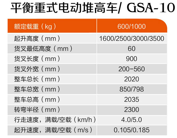 平衡重式電動堆高車GSA-10