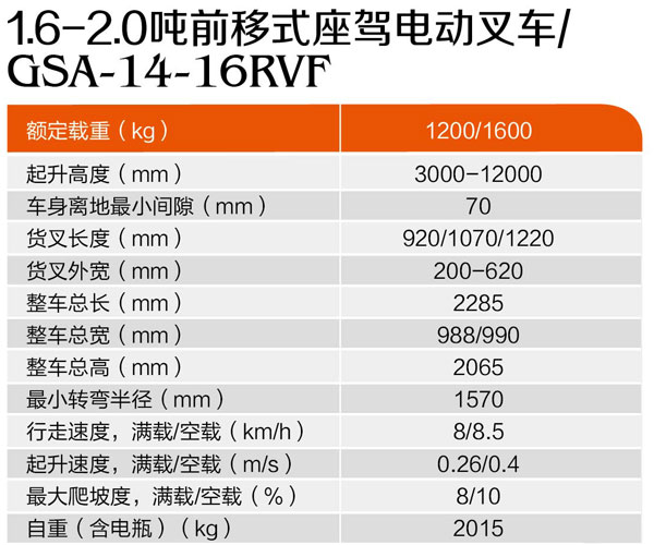 1.6-2.0噸前移式座駕電動叉車GSA-14-16RVF