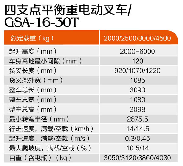 四支點(diǎn)平衡重電動(dòng)叉車GSA-16-30T
