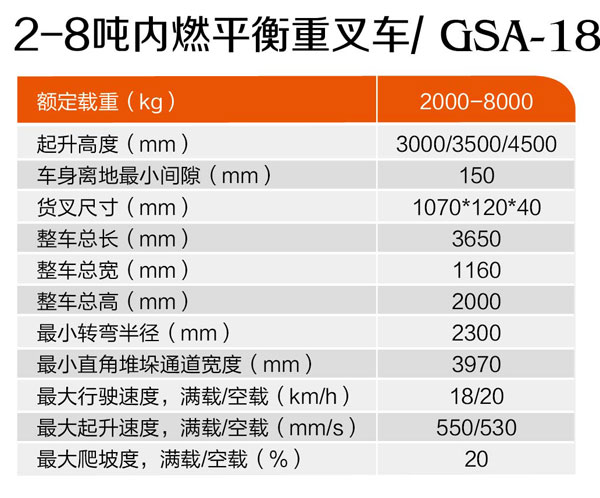 2-8噸內(nèi)燃平衡重叉車GSA-18