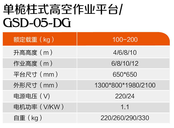單桅柱式高空作業(yè)平臺(tái)GSD-05-DG