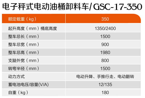 電子秤式電動(dòng)油桶卸料車GSC-17-350